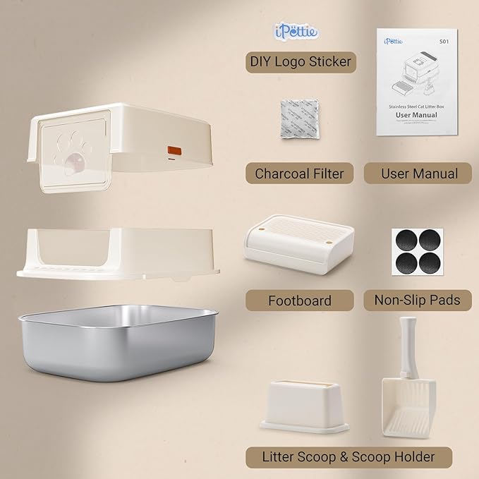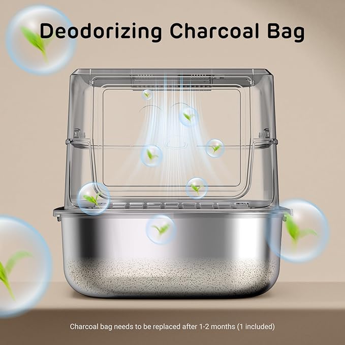 iPettie S01 20L Large Stainless Steel Litter Box, Odor-Reducing Smell Proof Charcoal Filter, Enclosed Litter Box with Cat Litter Scooper, Easy to Clean, Metal Litter Box with Lid
