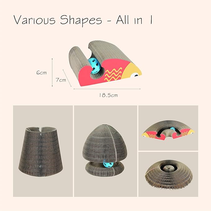 Magic Organ Multiform Scratching Board with Catnip, Foldable Magnetic Assembly Cat Scratch Pad for Outdoor Entertainment, Portable Accordion Cat Scratcher Cardboard with Bell Ball Toy for Indoor Cats