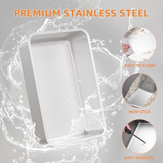 - EASY TO CLEAN, NO ODOR, DURABLE- Stainless steel litter box is made of high quality ABS material and 304 stainless steel. Unlike plastic litter boxes, the stainless steel litter box will not absorb any odors. The smooth surface is non-stick and easy to clean. The sturdy stainless steel tray will not rust or scratch like plastic trays and is built to last