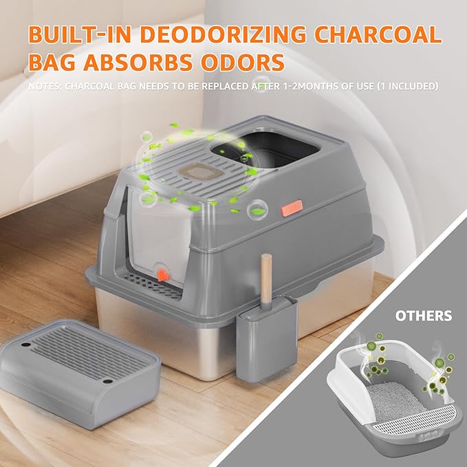 - 【Odor-Free】 enclosed cat litter boxes had upgraded structure, features carbon filters to absorb odor effectively, ensuring an fresh and comfortable space for cats.