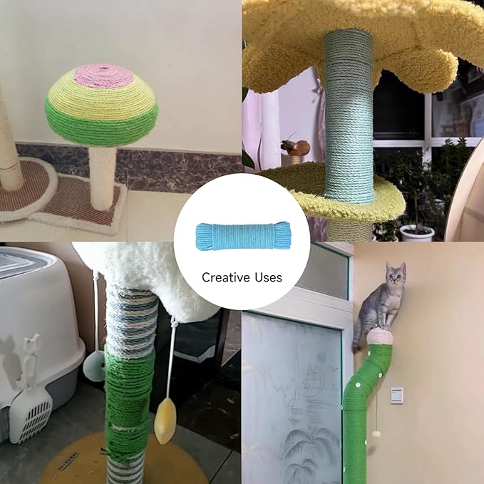 - Wide Application:This Sisal Twine Rope Can Be Wrapped to The Furniture, Flowerpot, Desk Leg, Bed Leg, Cat House, Cat Tree, Cat Tower or Anywhere Your Cat Like. Also Perfect for Decorations and Wrapping Furniture Legs or Any Area Your Cats Love to Scratch.cat scratch post rope.cat scratching post replacement.