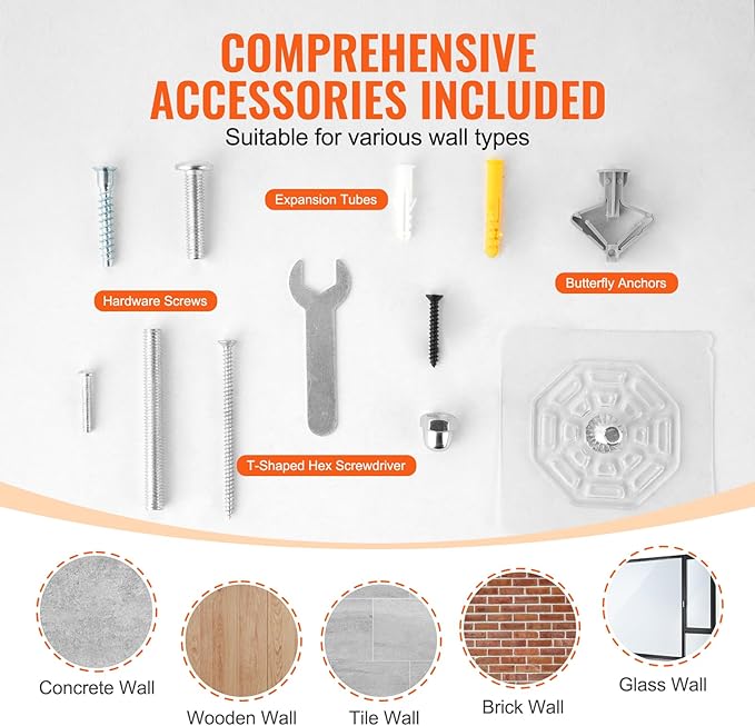 - Easy Installation: The package includes all necessary accessories and an installation guide. Simply follow the steps, insert the expansion tubes into the wall, and secure the boards using screws. The installation process is straightforward, allowing one person to easily set it up in no time.