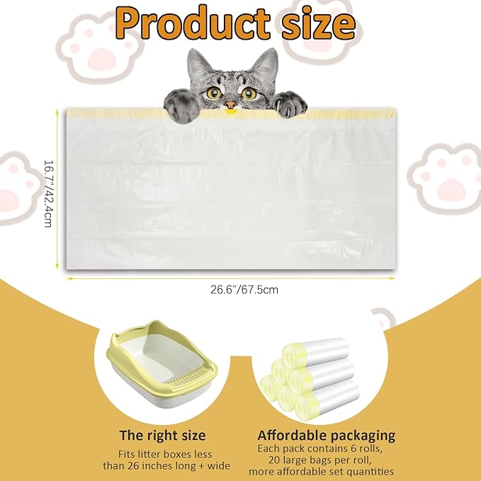 - 【Great Value Pack】This litter box bags is perfect for multi-cat households, providing over six months of convenience. Each bag measures 26"x16", fits cat litter boxes less than 26" long + wide, less than 8" deep, Compatible with Catlink Scooper Young/Luxury Pro and Litter-Robot 3/4. Also suitable for pet and everyday waste bags.