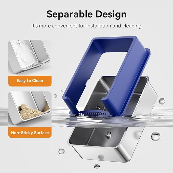 - Easy to Clean: The metal cat litter box is equipped with a plastic scoop, which is convenient to maintain cleanliness. Besides, the stainless steel body is easy to wipe down and rinse, while the removable blue/grey plastic lid allows for effortless access during cleaning