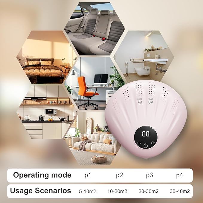 - 【Comprehensive Odor Elimination】Ozone Machine is engineered to effectively remove odors stemming from sources,Kitchen oil fume odor, bathroom shoe cabinet odor, including cat litter boxes, dog urine, smoke, basement musty odor, and more. Bid farewell to unpleasant smells and a fresh and comfortable environment. Long press for three seconds to power on.