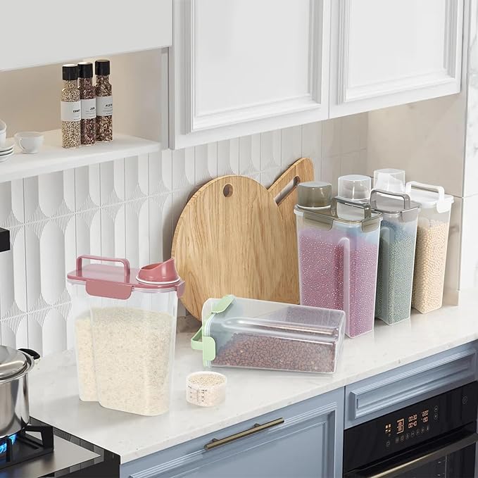 - MULTI-PUrRPOSE STORAGE: Our pet food container is suitable for storing dog food、cat food、bird seed、fish food、rice、 dry food、cereals、oats、flour and other large and small grains, as well as washing powder used at home. It is also a good choice.