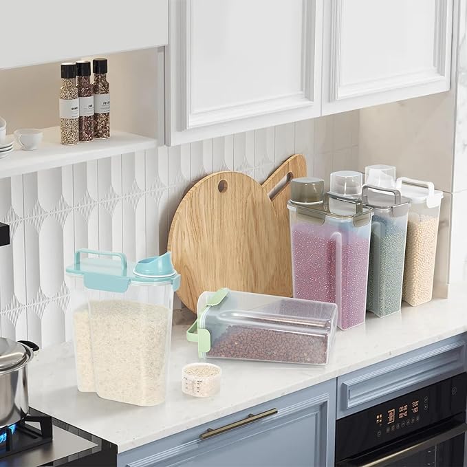 - MULTI-PUrRPOSE STORAGE: Our pet food container is suitable for storing dog food、cat food、bird seed、fish food、rice、 dry food、cereals、oats、flour and other large and small grains, as well as washing powder used at home. It is also a good choice.