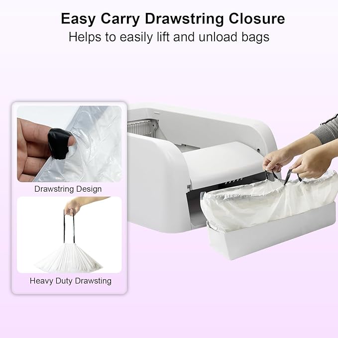 - 【QUALITY】 Upgraded litter box liners made from durable, tear-resistant materials. Features an easy-pull drawstring for effortless lifting, secure tie closure, and mess-free cleanup—keeping your home fresh and your cat happy.