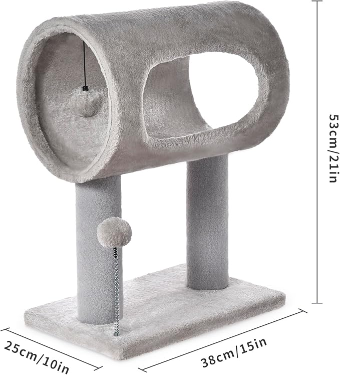 - 【Comfortable & Fun】: The cat scratching post with tunnel offers a cozy and engaging environment for your feline friend. With two carpeted scratching posts, it provides a pleasurable scratching experience while ensuring your cat remains entertained
