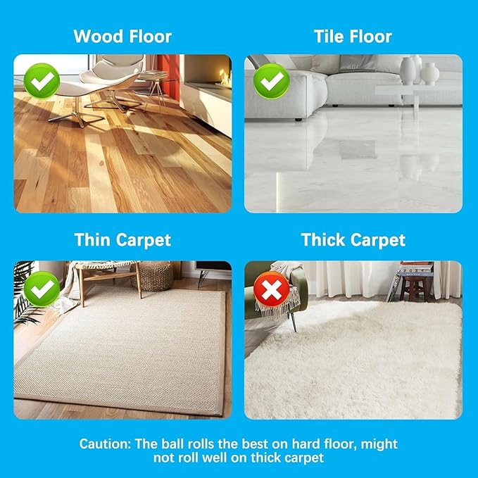 - Working in the mat: Put the electric rolling cat ball toy into the mat makes the toy more mysterious, stimulate the cats/kitty/kittens pouncing, pawing, and scratching the baggie toys, no worries of finding toys. This motorized cat toy also will help to stop your cat clawing and scratching your furniture
