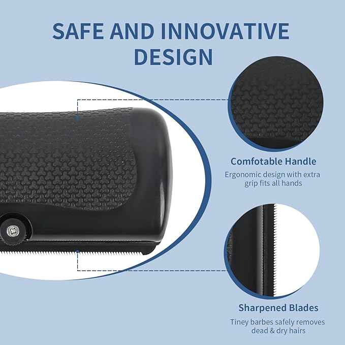 - Ergonomic and Easy to Use: What makes this deshedding brush dog hair amazing is the ergonomic, handheld design that allows precise and easy combing. The brush fits smoothly in your hand and ensures controlled movements when brushing and dematting.